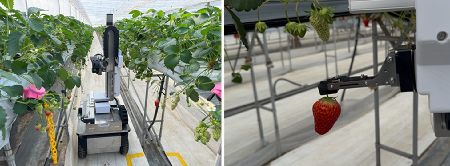 今回の実証では、エッジサーバはイチゴ圃場に設置しました。両拠点の間の距離は、直線距離で約400kmあり、光アクセス回線とインターネット回線で接続しました。今回追加した機能を活用することで、収穫ロボットを遠隔から精度高く操作し、イチゴの位置にロボットアームを1回の操作で正確に移動できた割合が約50%から約80%に向上しました。また、イチゴを傷つけずに収穫することができました。さらに、5人の方にロボットの遠隔操作を行って頂き、その全員から、操作性が改善されたことを実感した、と評価いただきました。