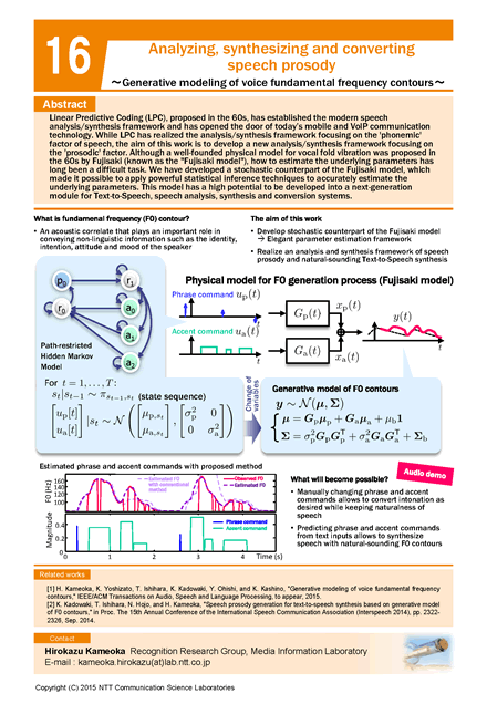 Linear Predictive Coding (LPC), proposed in the 60s, has established the modern speech analysis/synthesis framework and has opened the door of today’s mobile and VoIP communication technology. While LPC has realized the analysis/synthesis framework focusing on the 'phonemic' factor of speech, the aim of this work is to develop a new analysis/synthesis framework focusing on the 'prosodic' factor. Although a well-founded physical model for vocal fold vibration was proposed in the 60s by Fujisaki (known as the "Fujisaki model"), how to estimate the underlying parameters has long been a difficult task. We have developed a stochastic counterpart of the Fujisaki model, which made it possible to apply powerful statistical inference techniques to accurately estimate the underlying parameters. This model has a high potential to be developed into a next-generation module for Text-to-Speech, speech analysis, synthesis and conversion systems.