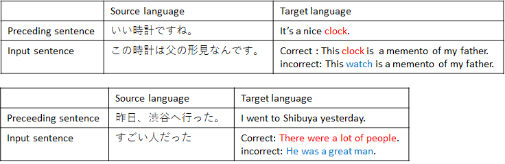 One of the problems with previous automatic evaluation metrics is that it cannot measure whether a machine translation system understand the context or not. NTT has created a Japanese-to-English discourse translation test set that focuses on co-reference and consistency and make it open to the public.