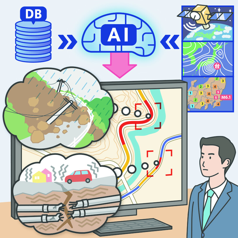 We aim to create a disaster-resilient society with predicting infrastructure damage