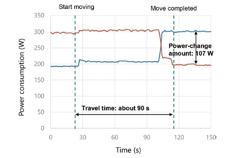 Through experiments, we quantitatively determined the relationship between load conditions, the time taken to move workloads, and adjustable power consumption. For example, when all VMs are under heavy load (CPU usage 85%, memory usage 80%), 107 W of power consumption can be adjusted, which is about 35% of the server power consumption (270 W). Note that it took approximately 90 seconds from the start of the VM move to its completion, and during that time, there was almost no effect on the virtual desktop service from the user's perspective (Fig. 2).